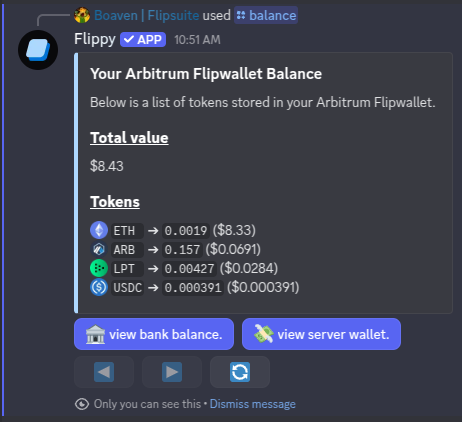 It will open your Flipsuite bank balance. - View server wallet: