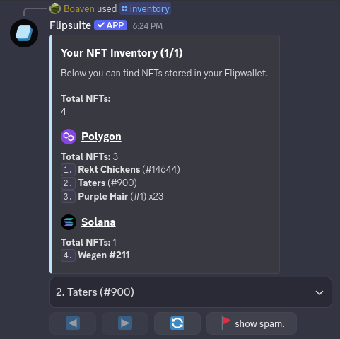 command to view your NFT inventory.