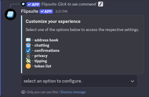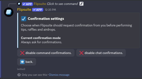 In confirmation settings you can disable confirmations for actions like tips, raffles and airdrops while executing commands or chatting with Flippy.
