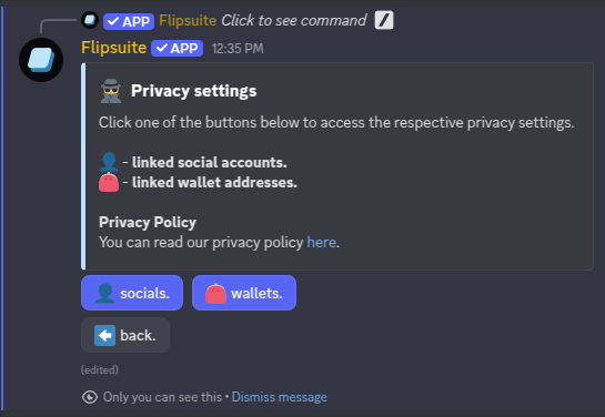 In privacy settings you can decide what information about socials and wallets linked to your account is shared with servers you verify in. Each option can be enabled/disabled either globally for all servers or on a per-server basis.