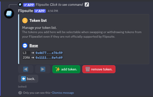 In the token list settings, you can save tokens that are not yet supported by Flipsuite. Adding a token to your custom token list will have the following effects:- Token will show up in your Flipwallet balance