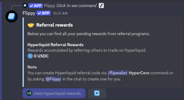 Here, you can view rewards that you earned by referring other users to use your Hyperliquid referral code in Flipsuite.