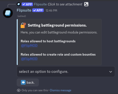 By default, only admins can create role and custom bounties in your server. If you wish to also allow your server mods to create these bounties, you can do so via control panel in Discord. Simply go to⚙️ settings > ⚔️ battleground > 🔐 permissions