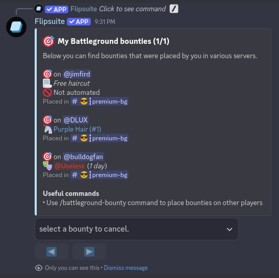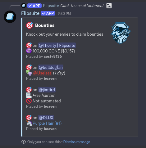 Bounties let users set rewards that are paid out from their own Flipwallet whenever a person with a bounty set on them gets killed during the battleground.