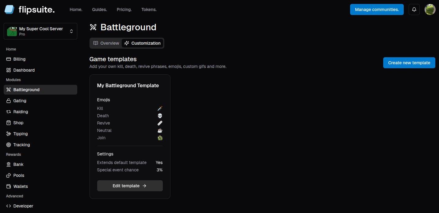 To create a battleground template, go to the Battleground tab in your community dashboard and switch to the Customization tab at the top.