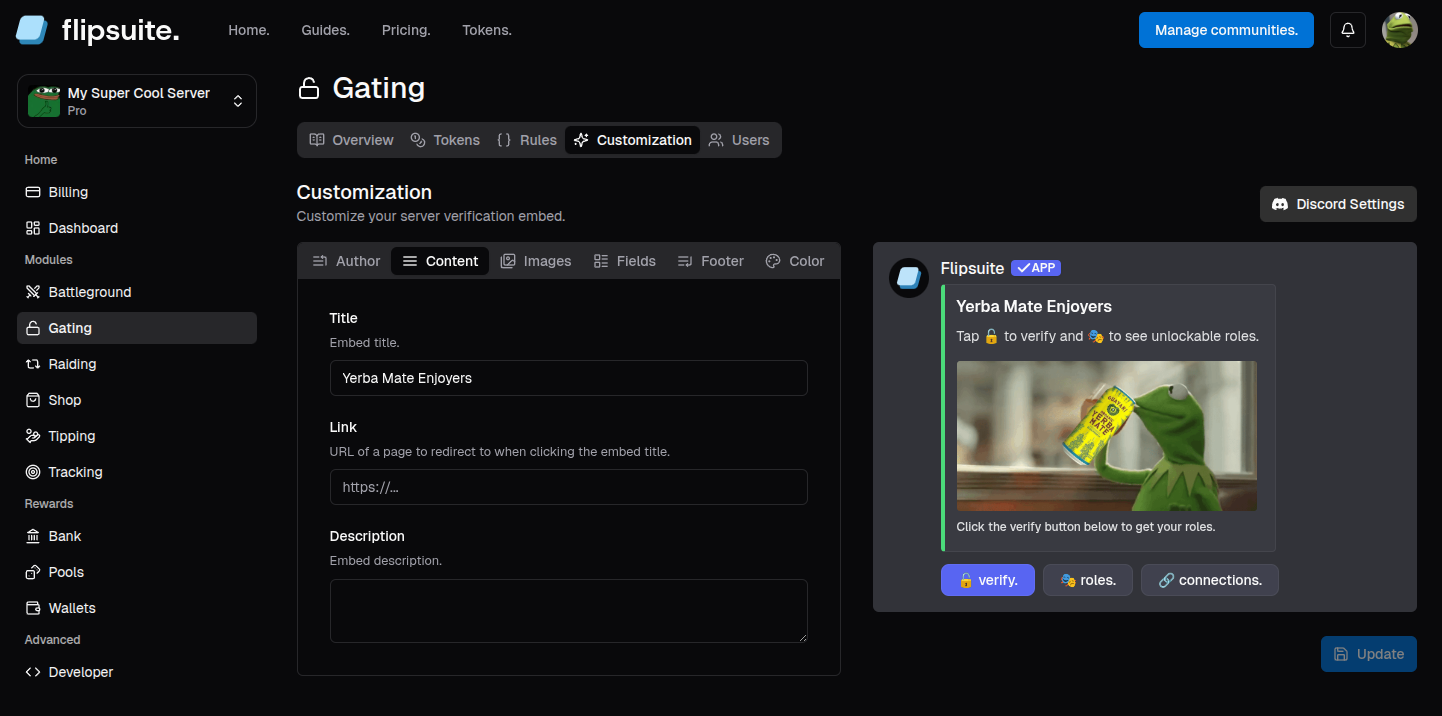 ⚙️ settings > 🔒 gating > 🔒 verification embed