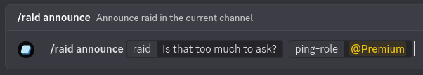 Simply go the channel you want to announce the raid in and execute the/raid announce
