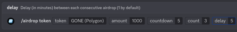 For example, to schedule an airdrop that is created 5 minutes after the previous one ends for 3 consecutive times,