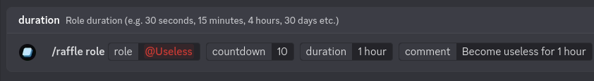 Duration of the role to raffle. If omitted, the role will be granted forever.