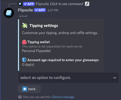 You can modify the following account-wide tipping settings in your /profile:- The minimum account age that’s required to enter your airdrops and raffles.