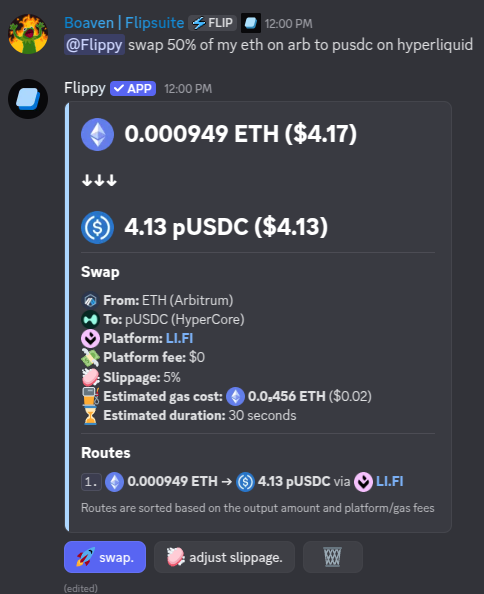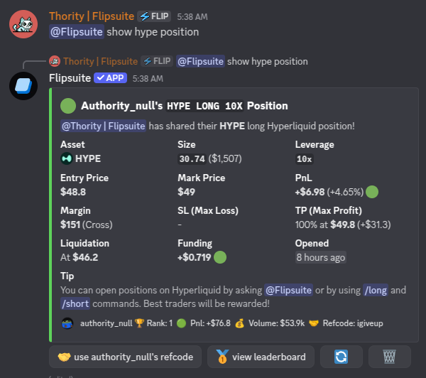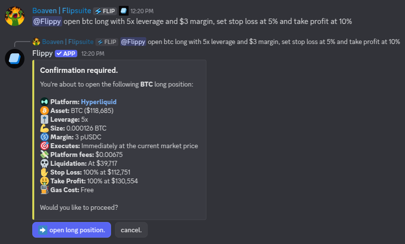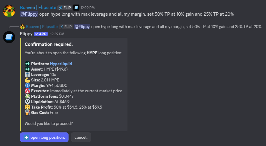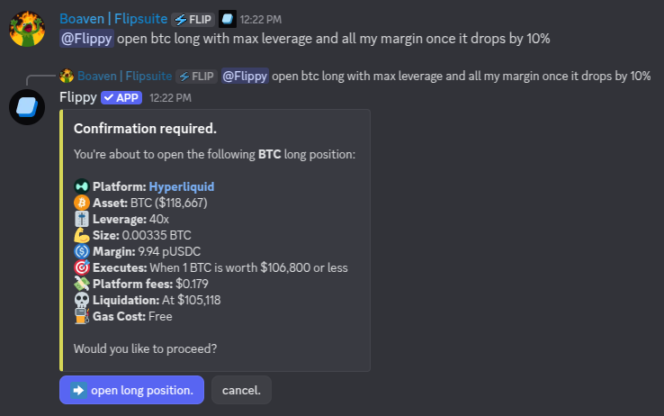 Hyperliquid by asking Flippy or by using the slash commands.