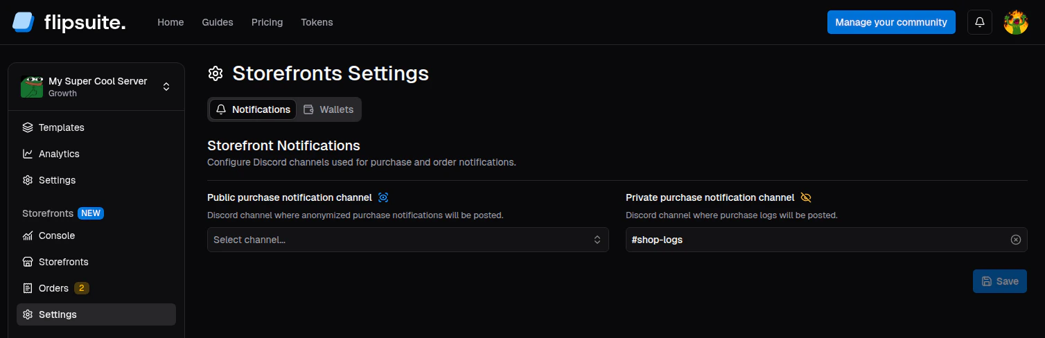 - Public channel - a channel where anonymized purchase notifications will be posted.